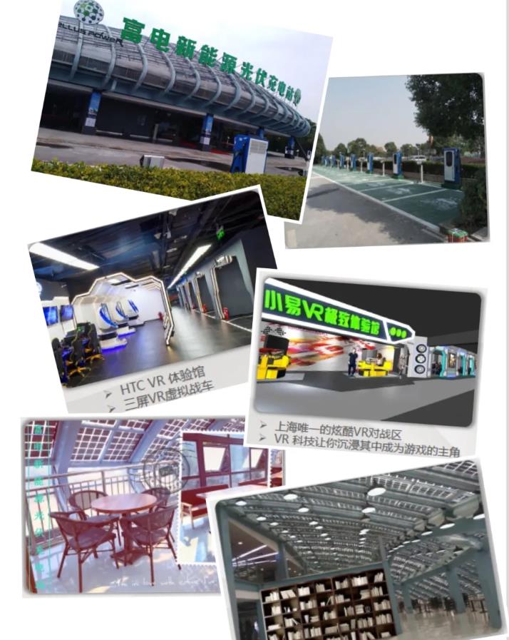 坐落在上海松江欢乐谷停车场的富电超级光伏充电站项目,不单电动汽车可由充电桩直接获取太阳能进行直流充电,富电集团还更多地在站内合理分布了各项生活、娱乐、餐饮设施。参照高速路休息服务区的经营模式,使用户更乐意在站点进行充电服务,是大型充电站商业经营模式的突破尝试。